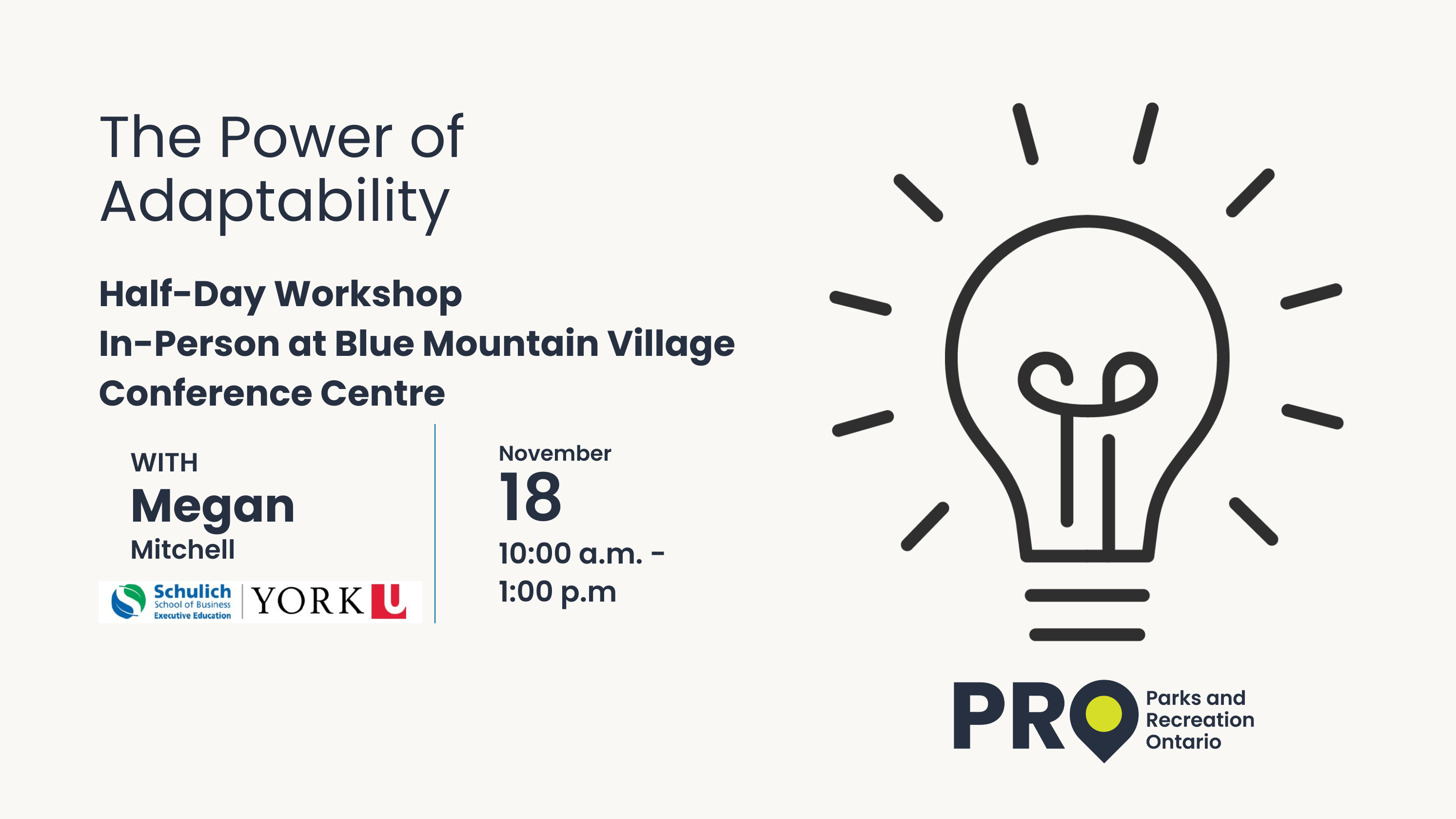 This dynamic in-person workshop helps Parks & Recreation professionals at all levels strengthen their adaptability. Explore the A.C.E. Model, uncover your own adaptability profile, and gain practical tools to build resilience, foster innovation, and lead with confidence in an ever-changing environment.